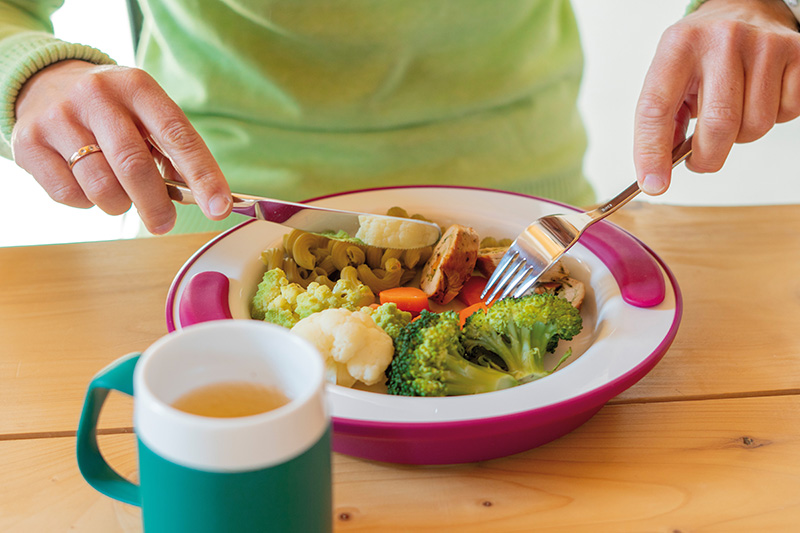 Cutlery with thickened handles sits comfortably in the hand and provides support when there is a lack of strength in the hands and fingers. Credit: Ornamin