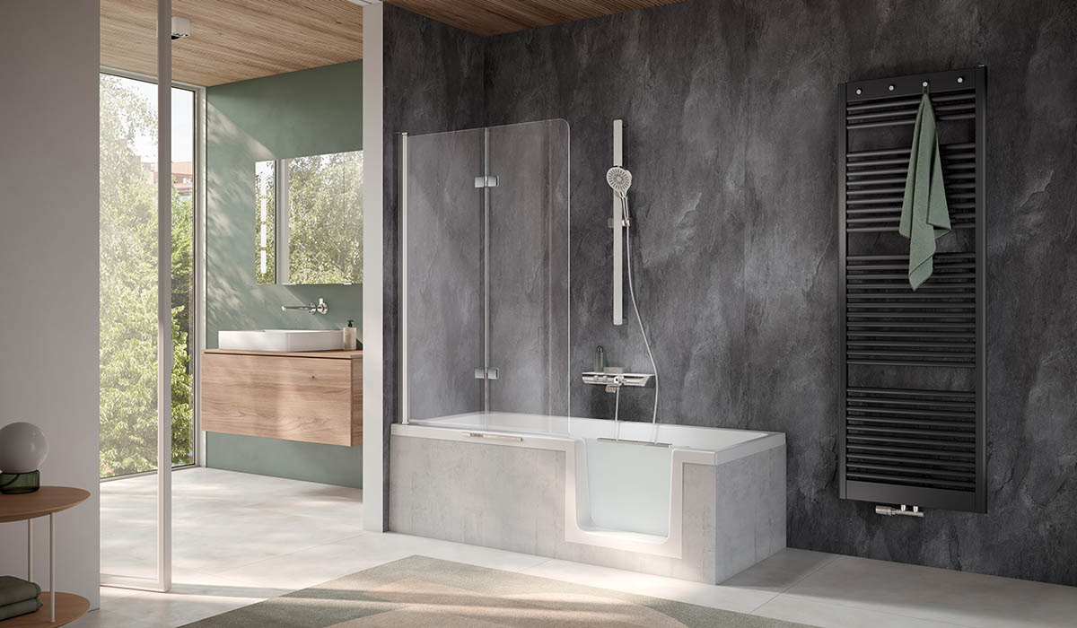 Nicht alle möchten auf ein Vollbad verzichten. Das Baden hat für viele Menschen einen ganz eigenen Stellenwert: Es ist Erholung, liebgewonnenes Ritual und mit Wohlgefühl verbunden. Und auch hier gibt es smarte Lösungen, die Komfort und Sicherheit verbinden. Erdogan Demirci beschreibt die Herausforderung: „Das Problem bei der herkömmlichen Badewanne ist die kniehohe Barriere.“ Ohne Badewannen-Tür führt das zu gefährlichen Kompromissen: Man dreht sich beim Einsteigen auf rutschigem Untergrund, hält sich irgendwo fest, verliert das Gleichgewicht.